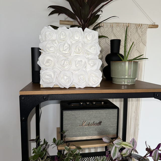 Cadre de rose blanche en mousse dimension : 18x18cm